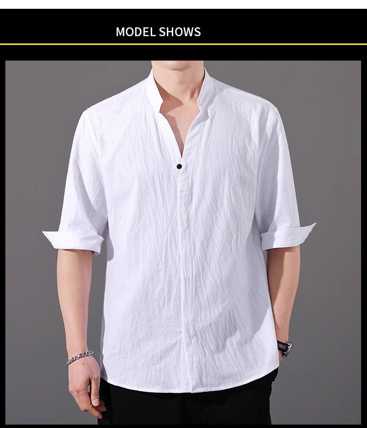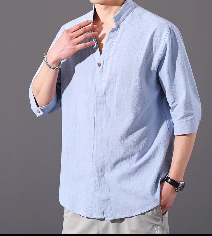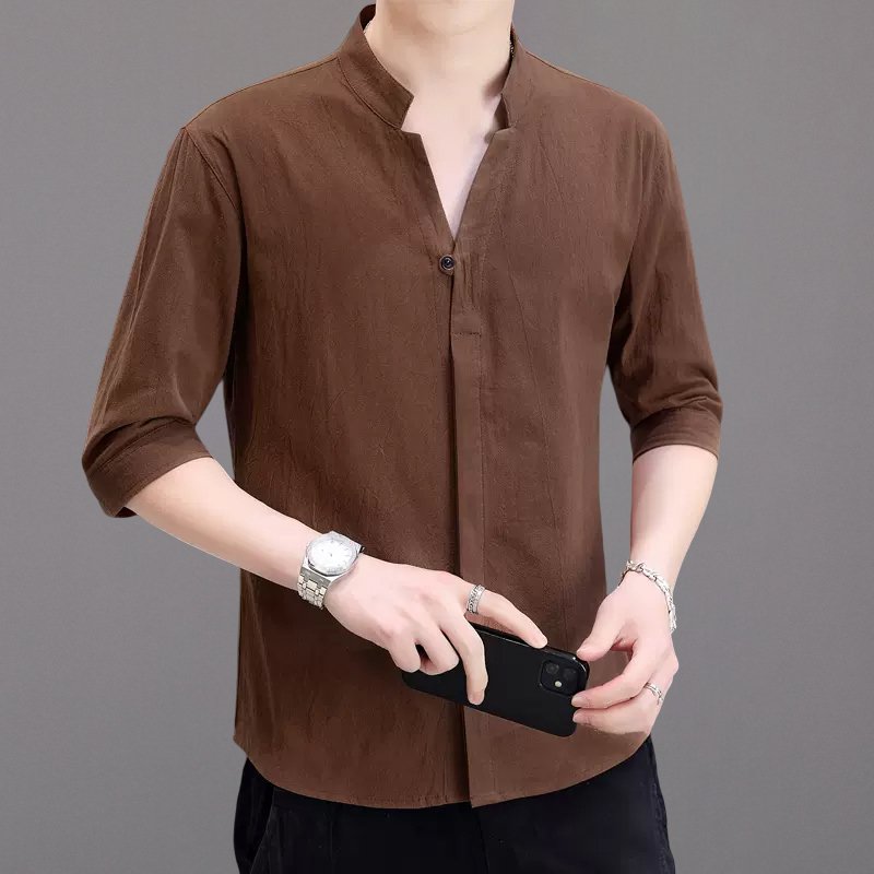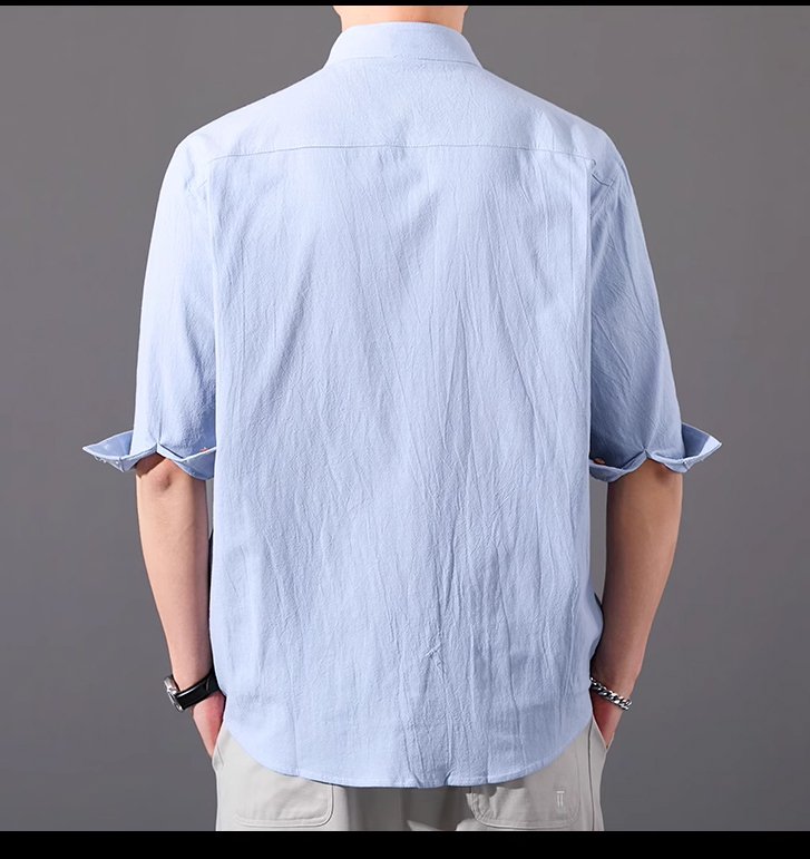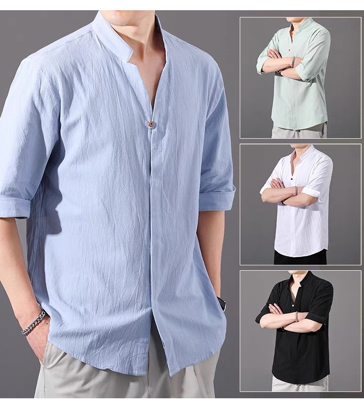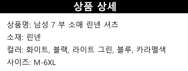 남성 7 부 소매 린넨 셔츠