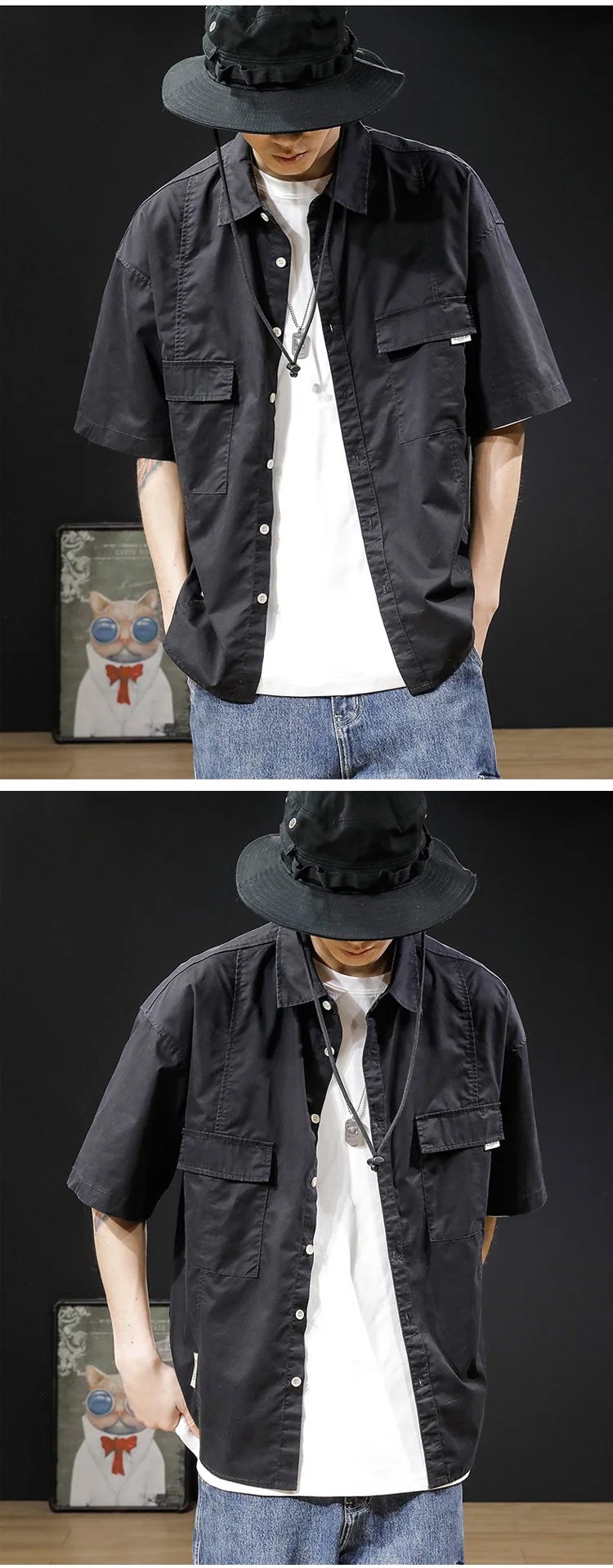 카고 반팔 순면 셔츠