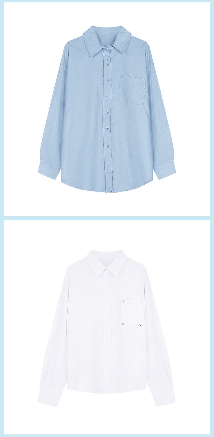 매치하기 쉬움 루즈핏 캐주얼 여자 중장 길이 셔츠